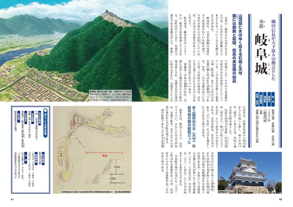 城郭イラストの第一人者・香川元太郎氏の総天然色イラスト(俯瞰図など)を用いて、